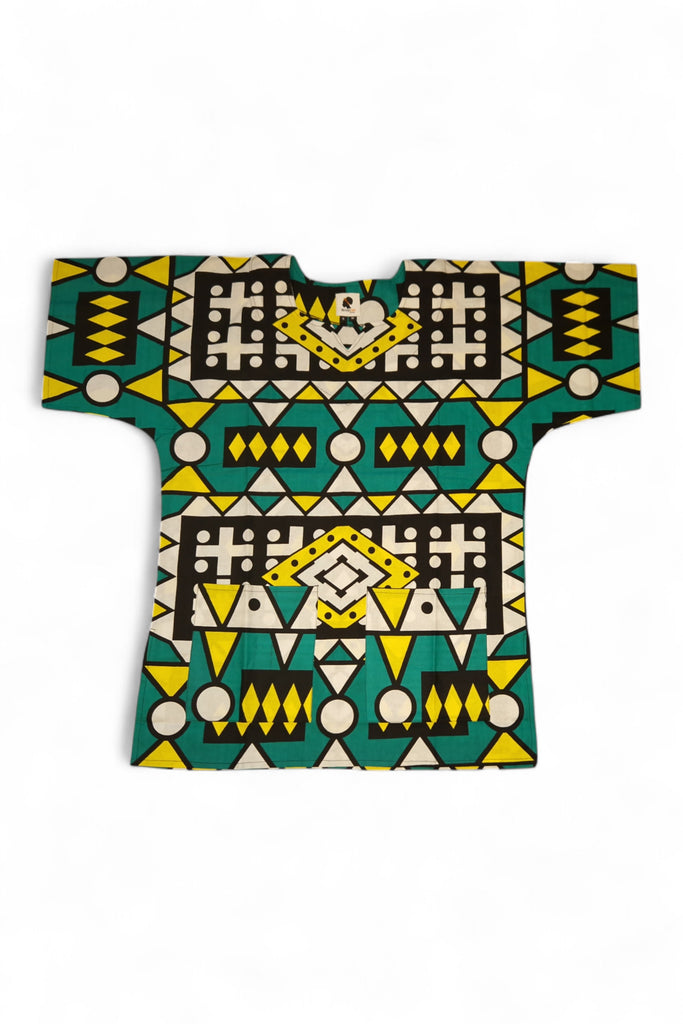 Chemise dashiki / Robe dashiki - Turquoise Jaune Samakaka - Top imprimé africain - Unisexe