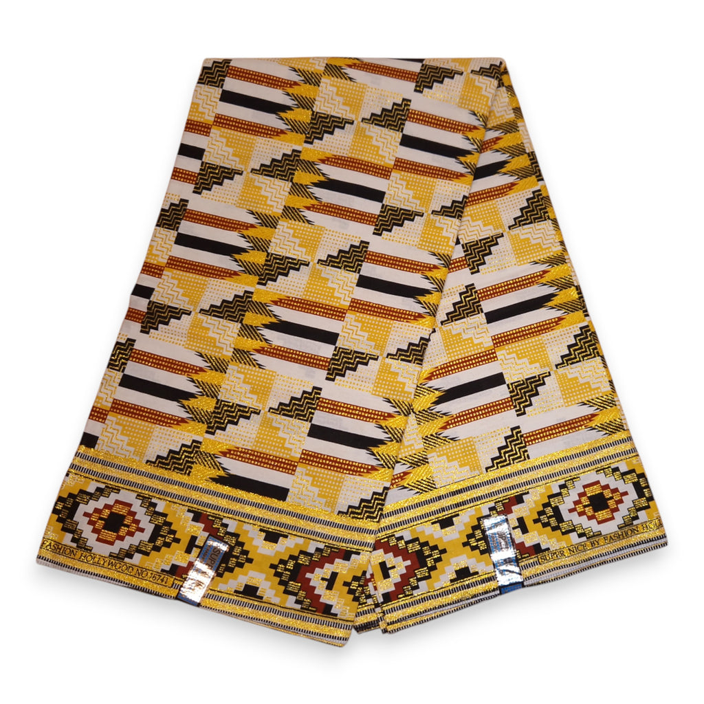 Tissu imprimé africain - Effets pailletés exclusifs 100% coton - GL-4049 Jaune Or Kente