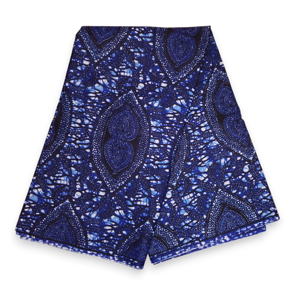 Tissu wax africain - Bleu Hidden Leaf Relic - 100% coton