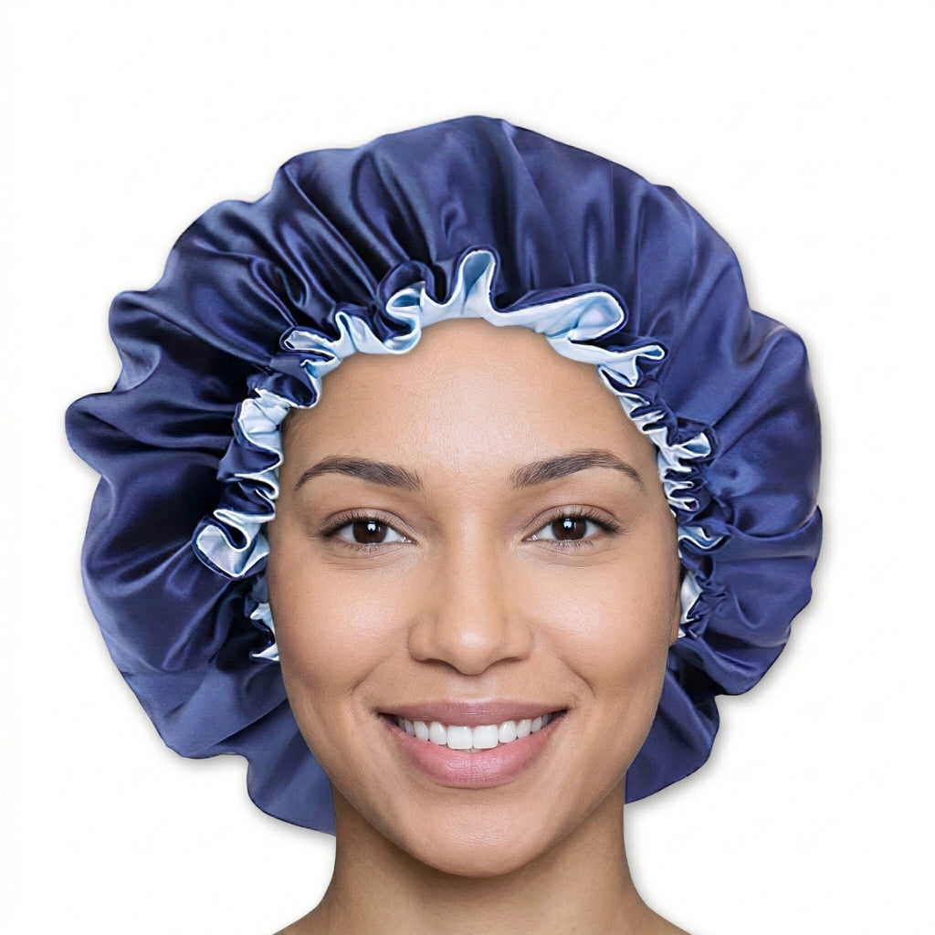 Bleu Bonnet en Satin ( Bonnet de nuit réversible en satin )
