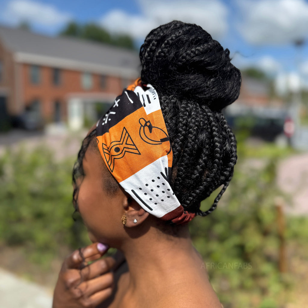 Bandeau imprimé africain - Adultes - Accessoires pour cheveux - Marron Bogolan Symbols