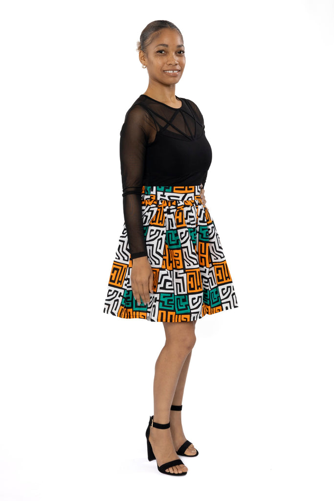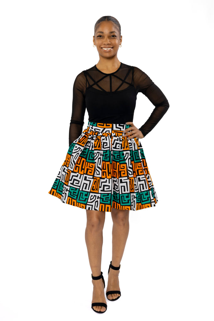 Mini-jupe à imprimé africain - Kente Orange / vert