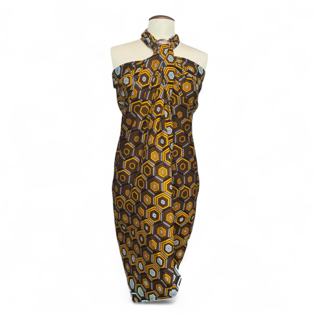 Paréo / Sarong / Pagne - Jupe de plage en coton / écharpe de portage - Brun Hexagon
