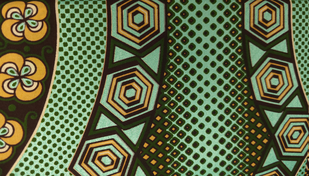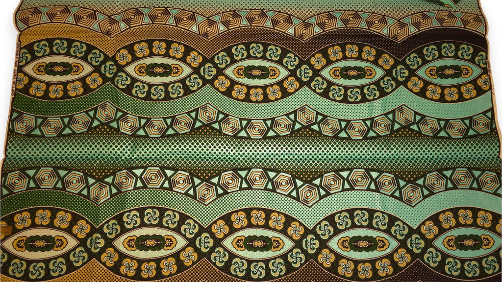 Tissu africain / tissu wax - Vert Ancient Hex Wave - Effet spécial Brillant Platinum Edition