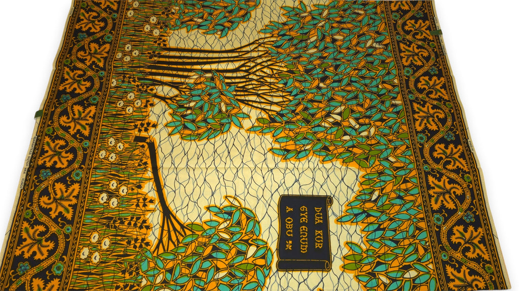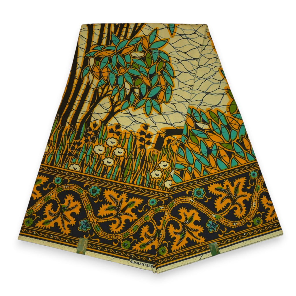 VLISCO Hollandais Wax print fabric - Turquoise Yellow Fallen tree VL00562 Limited Edition